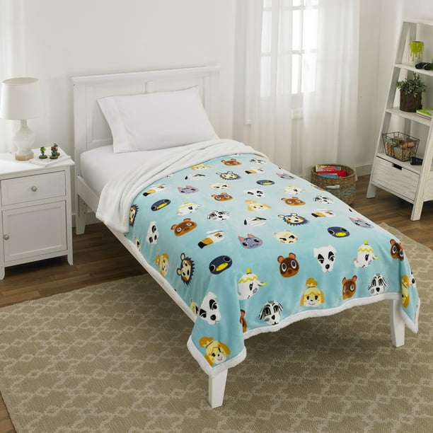 Animal Crossing Kids Blanket Twin Full Plush With Sherpa 60 X 90 Teal Walmart Com